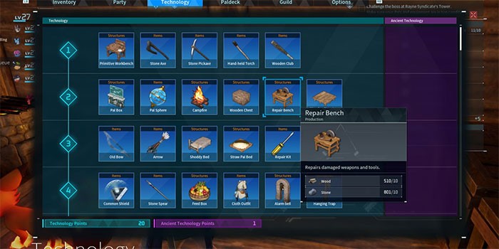 Để giải quyết vấn đề công cụ bị hư hỏng, người chơi nên ưu tiên mở khóa Repair Bench từ cây công nghệ của Palworld. Việc sửa chữa một công cụ, ví dụ như Stone Axe, chỉ tốn một lượng nhỏ tài nguyên, ngay cả khi nó đã xuống cấp hoàn toàn. Bên cạnh đó, việc đầu tư vào Repair Kit cũng là một lựa chọn tốt, bởi chúng tiện lợi khi mang theo nhưng có giá thành khá cao.