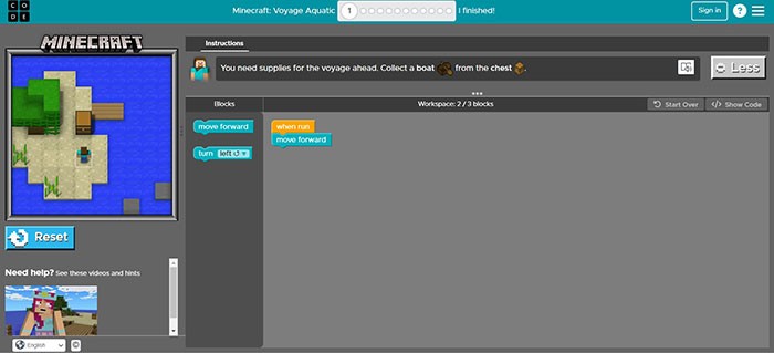 Minecraft đã quay trở lại với một hoạt động hoàn toàn mới! Khám phá và xây dựng thế giới dưới nước bằng code, tận dụng khả năng sáng tạo và kỹ năng giải quyết vấn đề của bản thân.