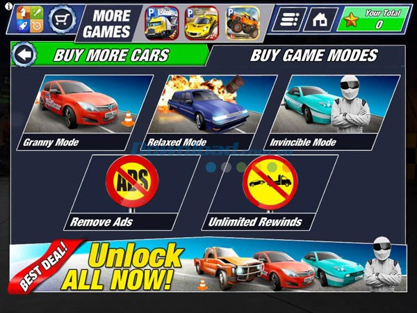 Hãy làm chủ những bài kiểm tra kỹ năng lái xe đỉnh cao của Top Gear: Extreme Parking trong phiên bản game đua xe hoàn toàn mới này. Đây là cơ hội để bạn sở hữu những mẫu xe siêu hot thông qua chuỗi nhiệm vụ lái xe đầy thử thách, đắm mình vào những pha va chạm mạnh mẽ và đầy kịch tính với chế độ Total Destruction, hoặc tham gia vào những cuộc đua huyền thoại cùng The Stig!