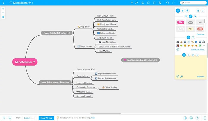 Với MindMeister, việc tạo lập, chia sẻ và chỉnh sửa mindmap trở nên dễ dàng. Người dùng có thể tùy biến sơ đồ bằng cách thêm biểu tượng, hình ảnh minh họa, ghi chú chi tiết, liên kết hữu ích và các tệp đính kèm cần thiết.