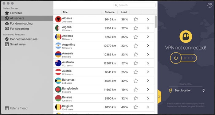 CyberGhost VPN cung cấp một giao diện thân thiện với người dùng và các máy chủ được tối ưu hóa cho các hoạt động cụ thể, chẳng hạn như phát trực tuyến hoặc tải torrent. Ứng dụng này cũng có tính năng chặn quảng cáo và theo dõi.