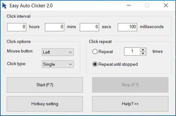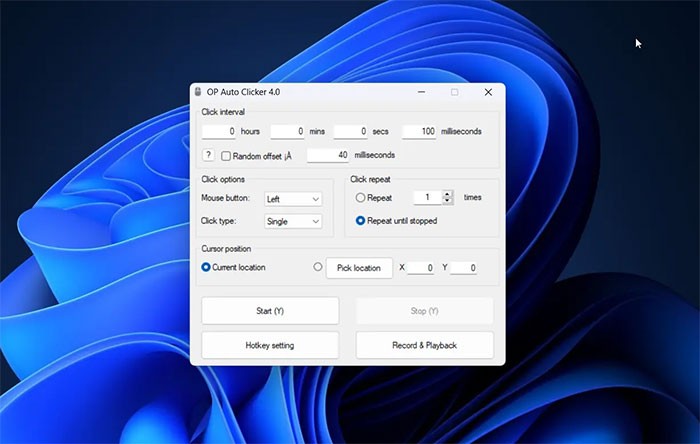 Người dùng hoàn toàn có thể tùy chỉnh phím tắt (Hotkey), điểm khởi đầu và các thông số lặp lại theo nhu cầu. Cần lưu ý rằng, AutoClick Pro phân biệt rõ ràng giữa nút "Start" và nút "Stop", khác với một số phần mềm khác chỉ sử dụng một nút duy nhất cho cả hai chức năng.