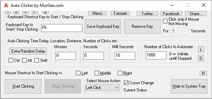 Việc kích hoạt chương trình tự động nhấp chuột này được thực hiện bằng phím tắt F9, và để dừng quá trình, người dùng chỉ cần nhấn F10.