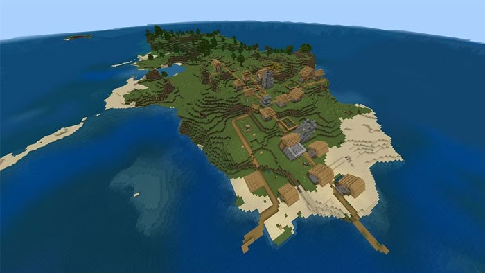Với seed này, người chơi sẽ xuất hiện trên một hòn đảo sinh tồn có diện tích đáng kể. Ngay tại rìa hòn đảo là một ngôi làng thảo nguyên, cung cấp một nguồn tài nguyên ổn định.