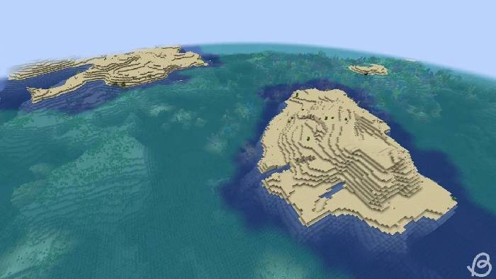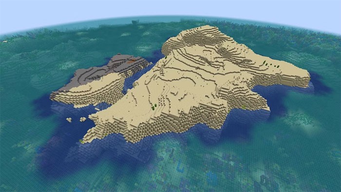 Điều này chính xác là những gì đang chờ đợi người chơi trong seed này. Người chơi sẽ bắt đầu trò chơi trên một hòn đảo bao phủ hoàn toàn bởi sa mạc.