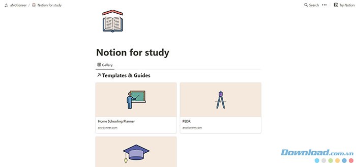 A Notioneer (A Notioneer) cung cấp một kho tàng các mẫu được phân loại thành ba nhóm chính: Notion cho công việc, Notion cho cuộc sống gia đình và Notion cho học tập.