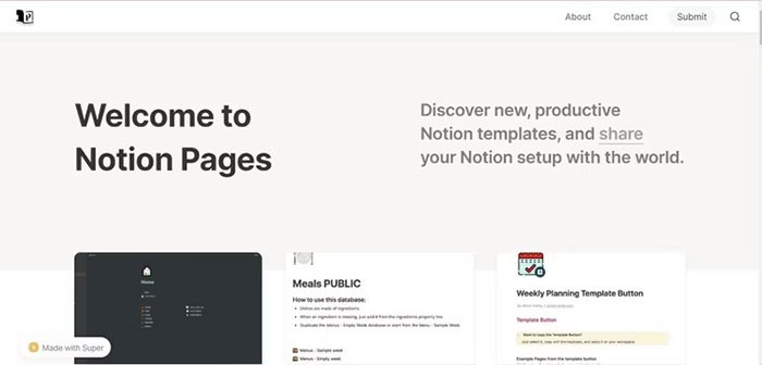 Hướng tới việc khơi gợi nguồn cảm hứng cho cộng đồng người sử dụng Notion trong việc sắp xếp và quản lý cuộc sống, Notion Pages cung cấp một tuyển tập đa dạng các mẫu được thiết kế tối ưu.