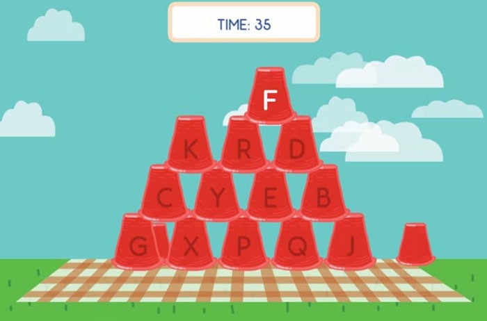 Trẻ em có thể tham gia các hoạt động xếp chồng và phân loại chữ cái trong trò chơi Cup Stack Typing.
