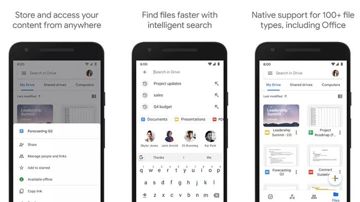 Google Drive được biết đến như một nền tảng lưu trữ trực tuyến, tích hợp sẵn trên hệ điều hành Android. Người dùng mới sẽ được cung cấp 15GB dung lượng miễn phí, sử dụng vĩnh viễn ngay sau khi tạo tài khoản.