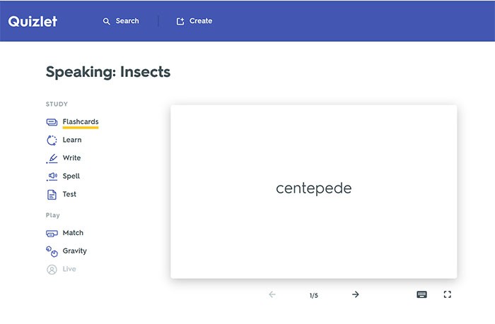 Điểm nổi bật của Quizlet chính là công cụ flashcard, được thiết kế để tối ưu hóa hiệu quả ghi nhớ từ mới.