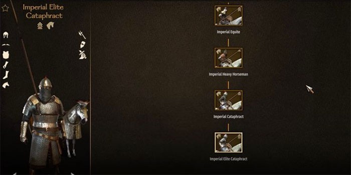 Có đến 3 đơn vị Imperial xuất hiện trong danh sách này, và điều đó hoàn toàn có lý do. Đơn vị đầu tiên là Elite Cataphract. Không chỉ là một đơn vị kỵ binh xuất sắc (260 Polearm, 200 Riding), họ còn có thể đóng vai trò là bộ binh hiệu quả trong các trận vây hãm nhờ chỉ số 200 One-Handed.