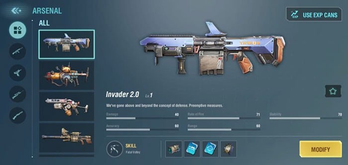 Với những game thủ mới bắt đầu, Invader là một trang bị đáng cân nhắc. Thiết kế của loại vũ khí này mang phong cách hiện đại, tiên tiến, đi kèm với những thông số ấn tượng.
