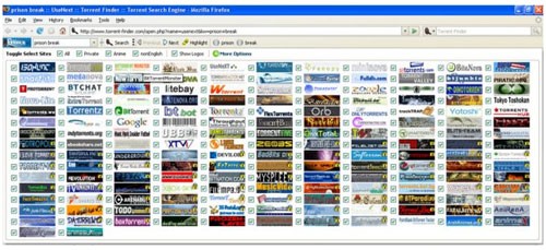 Torrent Finder Toolbar tổng hợp dữ liệu từ hơn 170 trang web khác nhau. Bạn có thể lựa chọn tìm kiếm trên toàn bộ các trang web này, hoặc giới hạn tìm kiếm ở một số trang web cụ thể bằng cách nhấp vào biểu tượng mũi tên cạnh thẻ "Search". Một trang web mới sẽ mở ra để bạn chọn các trang web mong muốn.