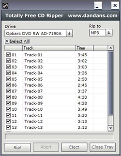 Totally Free CD Ripper là một tiện ích mạnh mẽ, được thiết kế để chuyển đổi các tập tin âm thanh từ đĩa CD sang nhiều định dạng phổ biến như MP3, Ogg, Wav, Ape và FLAC.