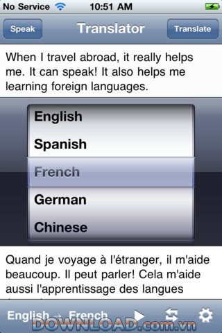 Ứng dụng này cho phép người dùng dịch một câu hoặc cụm từ sang nhiều ngôn ngữ, đồng thời lựa chọn giọng đọc tương ứng để nghe kết quả dịch.