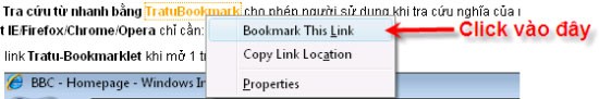Bước 1: Nhấp chuột phải vào liên kết: TratuBookmark và chọn Bookmark this link (Đánh dấu liên kết này).