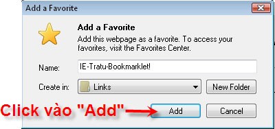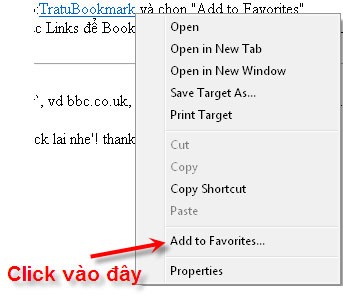 Bước 2: Nhấp chuột phải vào đường dẫn: TratuBookmark và chọn Add to Favorites (Thêm vào mục yêu thích).