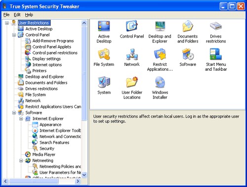 True System Security Tweaker sở hữu giao diện trực quan, mặc dù đơn giản, nhưng vẫn đảm bảo tính thẩm mỹ cao. Người dùng có thể lựa chọn từ hơn 470 tùy chọn bảo mật khác nhau để tùy chỉnh hệ thống theo nhu cầu.
