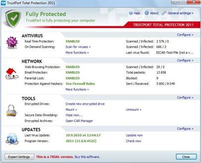 TrustPort Total Protection 2011 cung cấp khả năng bảo vệ tối ưu cho máy tính của bạn, chống lại các mối đe dọa từ virus, phần mềm gián điệp và mã độc hại.