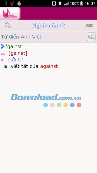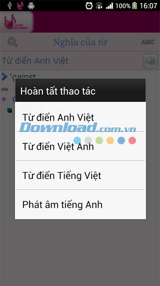 - Chuyển đổi linh hoạt: Dễ dàng chuyển đổi giữa các bộ từ điển Anh - Việt, Việt - Anh, hoặc sử dụng từ điển tiếng Việt thuần túy.