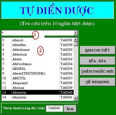 Ứng dụng viết trên nền Access được thiết kế để hỗ trợ việc tìm kiếm, tra cứu nhanh chóng các biệt dược khác nhau. Với cơ chế tự điển mở, người dùng có quyền tự do chỉnh sửa hoặc bổ sung thêm các thông tin về biệt dược mới.