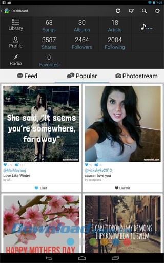 TuneWiki cho phép người dùng chia sẻ hình ảnh trực tiếp từ thư viện cá nhân, tạo nên những bài đăng độc đáo và đầy cảm xúc.