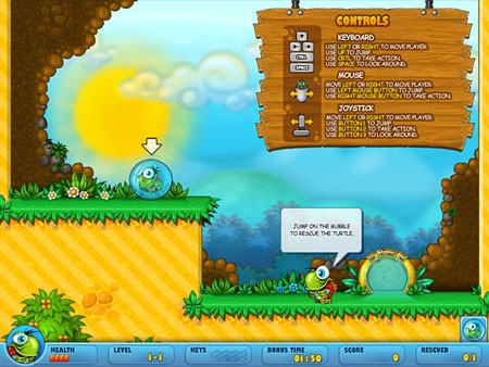 Nhiệm vụ chính của bạn là giúp đỡ chú rùa vượt qua ba phần chơi đầy thử thách và giải cứu hàng trăm chú rùa con khỏi tay kẻ xấu.