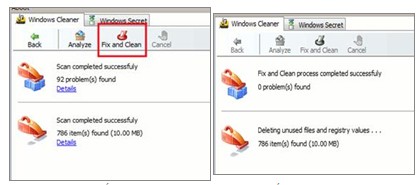 Sau khi quá trình quét hoàn tất, hãy nhấn vào nút “Fix and Clean” để tiến hành dọn dẹp hệ thống.