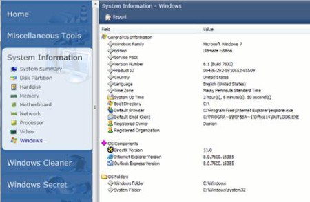 : Tại đây, bạn có thể tìm hiểu thông tin chi tiết về hệ thống, bao gồm bo mạch chủ, đĩa cứng, CPU, card mạng, video và phiên bản Windows đang sử dụng.