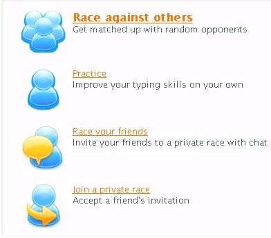 Nếu bạn muốn luyện tập cá nhân, hãy chọn Practice. Còn nếu bạn muốn tham gia một cuộc đua, hãy nhấn vào dòng chữ Race against others. Bạn có thể chọn Race your friends, sau đó gửi mã và đường dẫn cho bạn bè để cùng tham gia. Những ai muốn tham gia chỉ cần truy cập vào đường dẫn đó.