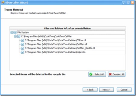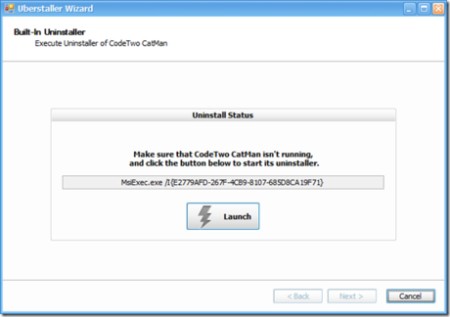 Nhấn nút Launch để khởi động quá trình gỡ bỏ. Sau khi hoàn tất, hãy nhấp Next, và Uberstaller sẽ hiển thị danh sách các tệp tin và thư mục còn sót lại mà quá trình gỡ bỏ mặc định chưa xóa.