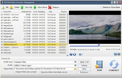 UM IPod Video Converter là phần mềm được đánh giá cao về hiệu quả trong việc giải mã và mã hóa video dành cho thiết bị iPod. Đồng thời, ứng dụng này còn cho phép chuyển đổi giữa hầu hết các định dạng video và audio phổ biến hiện nay sang định dạng tương thích với iPod video.