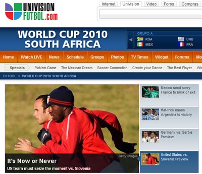 Univision Football là một trang web đa năng, chuyên cung cấp thông tin và phát sóng trực tiếp tất cả các trận đấu của World Cup 2010.