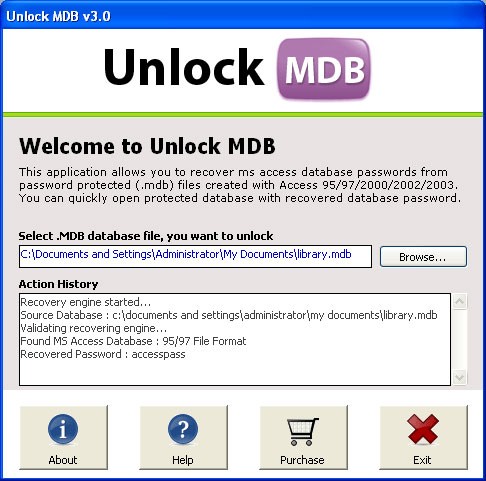 Phiên bản dùng thử của Unlock MDB – phần mềm khôi phục mật khẩu Access – cho phép người dùng khôi phục được 2 ký tự của mật khẩu cơ sở dữ liệu Access. Để khôi phục mật khẩu một cách đầy đủ, bạn có thể mua bản quyền đầy đủ với mức giá $25.
