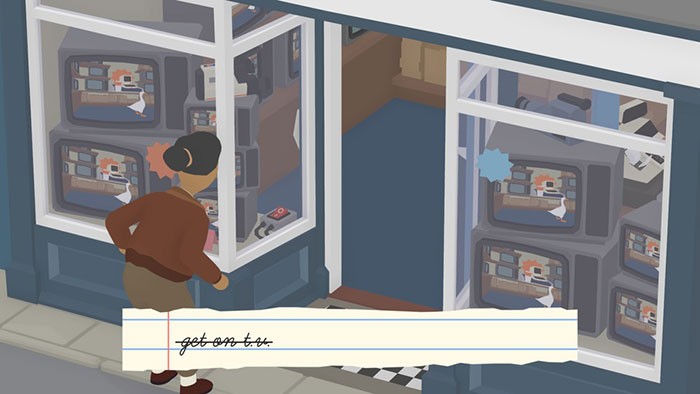 Hành động này sẽ kích hoạt hệ thống camera. Lúc này, ngỗng cần di chuyển sang phía bên trái của cửa hàng để có thể xuất hiện trên màn hình tivi.
