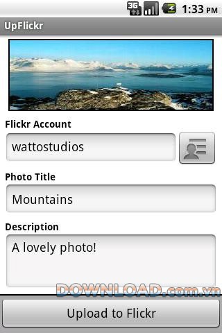 UpFlickr for Android là giải pháp tối ưu giúp bạn upload ảnh nhanh chóng lên Flickr.