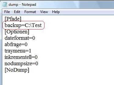 Sau khi hoàn tất tải xuống và giải nén, người dùng cần mở file dump.ini để cấu hình các tùy chọn sao lưu.