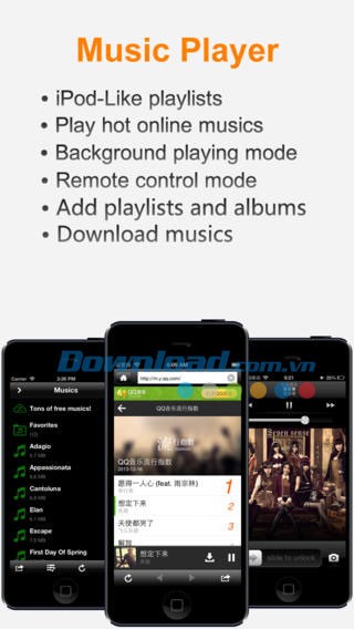 Ứng dụng cung cấp khả năng tạo danh sách phát, phát nhạc nền ngay cả khi ứng dụng đang chạy ở chế độ thu nhỏ, cùng với việc điều khiển phát nhạc từ xa. Đồng thời, ứng dụng có tương thích hoàn toàn với AirPlay, mở ra khả năng trình chiếu video lên màn hình lớn của Apple TV một cách dễ dàng.