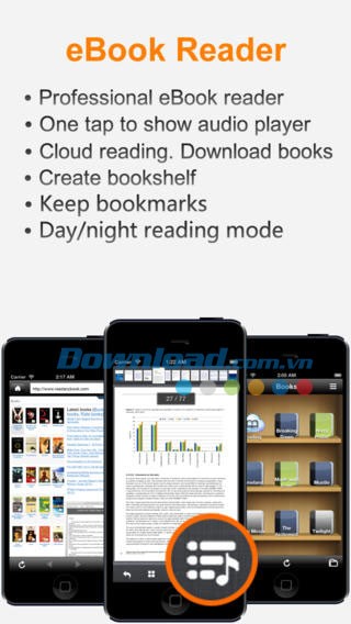 Ứng dụng hỗ trợ đa dạng các định dạng tài liệu như PDF, ePub, văn bản MS Office, iWork, tài liệu, HTML, TXT. Người dùng có thể xây dựng thư viện eBook cá nhân để quản lý tài liệu một cách khoa học, ghi nhớ vị trí đọc cuối cùng và thêm đánh dấu trang (bookmark) vào tài liệu.