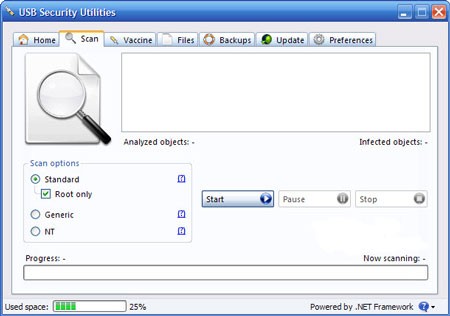 Để đảm bảo quét kỹ lưỡng, bạn nên bỏ chọn tùy chọn "Root only" để chương trình không bỏ sót bất kỳ file nguy hiểm nào. Sau khi thiết lập, nhấn Start để bắt đầu quá trình quét. Tốc độ quét của chương trình khá nhanh, tuy nhiên khả năng nhận diện virus có thể chưa bằng USB Disk Security.