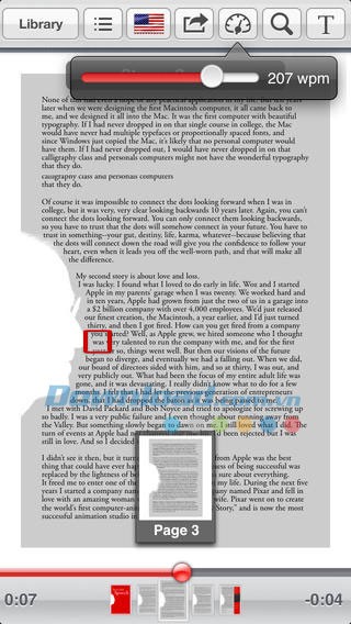 Ứng dụng trình bày tài liệu PDF dưới dạng văn bản, đồng thời hỗ trợ đọc bằng giọng nói. Nhờ đó, bạn có thể vừa lắng nghe vừa theo dõi nội dung, đặc biệt hữu ích khi học tập hoặc làm việc với ngôn ngữ thứ hai. Bạn có thể dễ dàng kiểm tra lại những đoạn chưa nghe rõ ngay trên màn hình. Phiên bản di động mới tương thích với iPhone, iPad và iPod Touch.