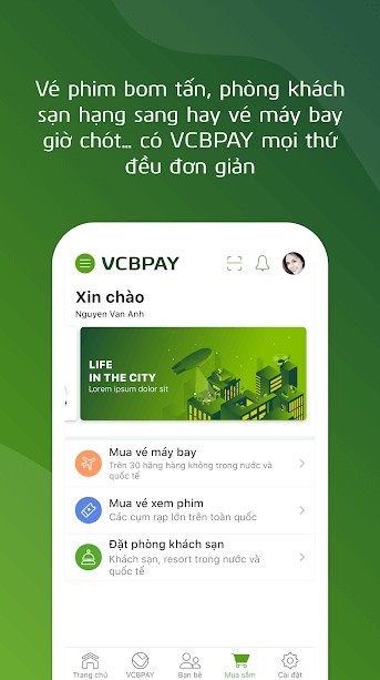 - Tận hưởng các tiện ích mua sắm: mua vé máy bay, vé xem phim, và đặt phòng khách sạn trực tiếp trên ứng dụng.
