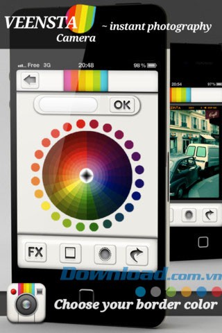 Hãy hình dung một ứng dụng cho phép bạn tự do chọn bất kỳ màu sắc nào để tô điểm cho đường viền ảnh – đó chính là Veensta Camera for iOS! Người dùng thậm chí có thể nhập mã hex để xác định màu sắc một cách chính xác.