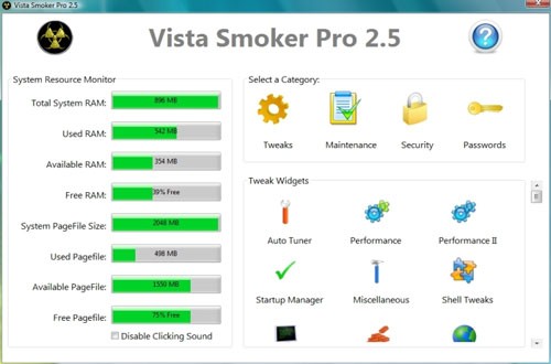 Nếu bạn không hài lòng với tính năng User Account Control (UAC) của Vista, chương trình này cung cấp khả năng điều chỉnh hoạt động của UAC. Thậm chí, Vista Smoker Pro 2.5 còn cho phép loại bỏ các mũi tên trên biểu tượng shortcut trên màn hình desktop.