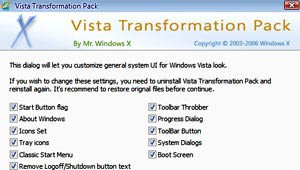 - Vista Transformation 6.0 có dễ cài đặt và gỡ bỏ không? Chương trình này chạy khá ổn định và có thể cài đặt, gỡ bỏ dễ dàng. Tác giả khuyến cáo nên cài đặt trong chế độ Safe Mode và sao lưu file hệ thống trước khi cài đặt để có thể khôi phục trạng thái cũ.