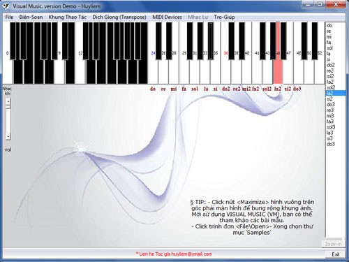 Chương trình tương thích với hệ điều hành Windows và yêu cầu card âm thanh (Midi). Để sử dụng, bạn chỉ cần tải xuống tập tin VisualMusic.zip (dung lượng 720Kb), giải nén vào ổ cứng và chạy tập tin Visual Music.exe (hoặc tạo shortcut trên desktop).