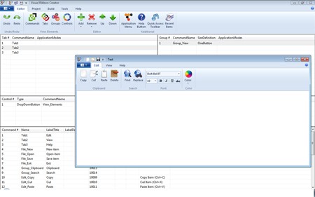- Hỗ trợ tạo Ribbon cho các thành phần như: lệnh, ứng dụng độc lập, các tab, menu ngữ cảnh, nhóm chức năng, nút bấm, nút thả xuống, điều khiển font chữ và bảng chọn màu.