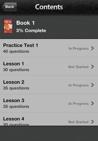 Trong phần Available Content, bạn sẽ thấy danh sách đầy đủ các nhóm bài tập có sẵn để luyện tập trực tiếp trên iPhone. Việc lựa chọn bài tập thực hiện rất đơn giản, chỉ cần nhấn vào dạng bài tập mong muốn.