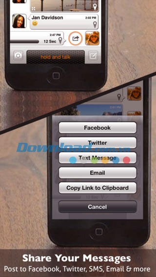 Thứ 3, mời bạn bè tải xuống Voxer qua tin nhắn SMS. Hãy mời người dùng các thiết bị iDevice tải ứng dụng Voxer và trò chuyện cùng bạn qua tin nhắn.