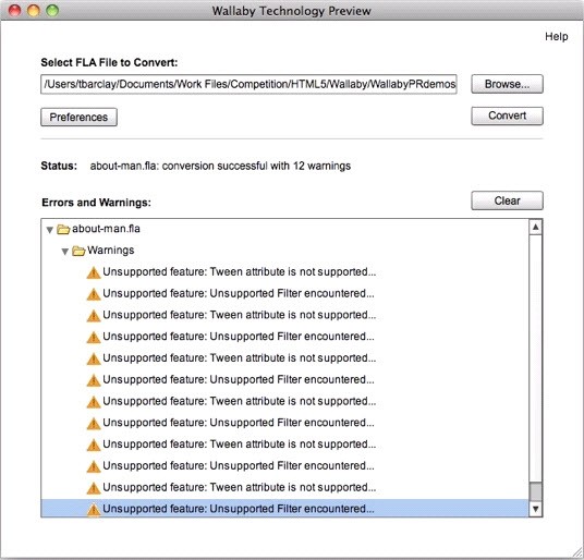 Wallaby tương thích với cả hệ điều hành Mac và Windows, yêu cầu sự hỗ trợ của Adobe AIR. Ngoài ra, sau khi kéo thả hoặc chọn một tệp FLA, bạn có thể chuyển đổi nó sang các định dạng khác như HTML, SVG, CSS và nhiều định dạng tệp khác.